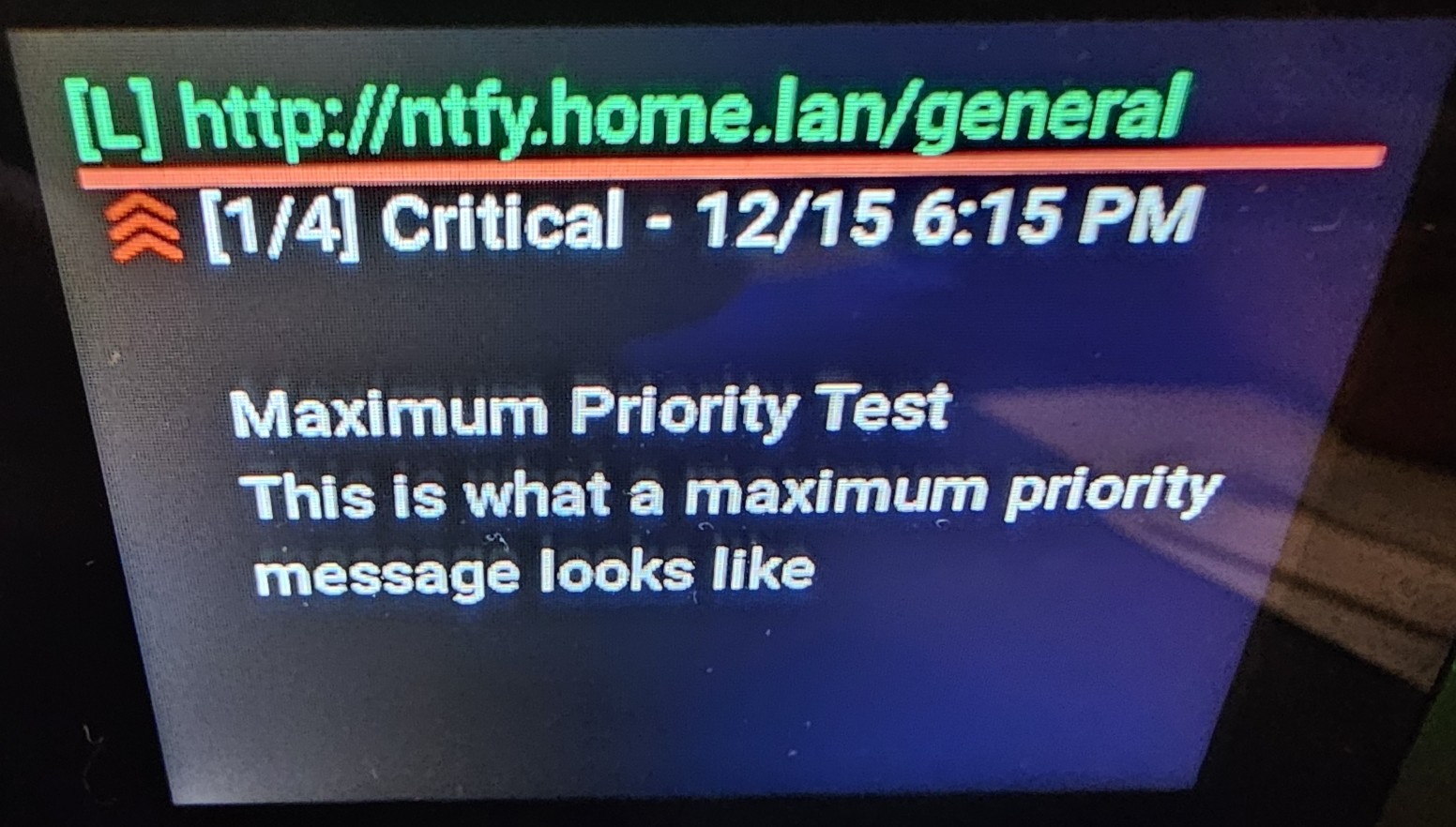 I run a proxmox node with a ntfy LXC. I have many of my other LXC monitors and such write to ntfy and I get the notifications on my web or phone of course, but having this little display right next to my keyboard gave me the idea to show them there too.